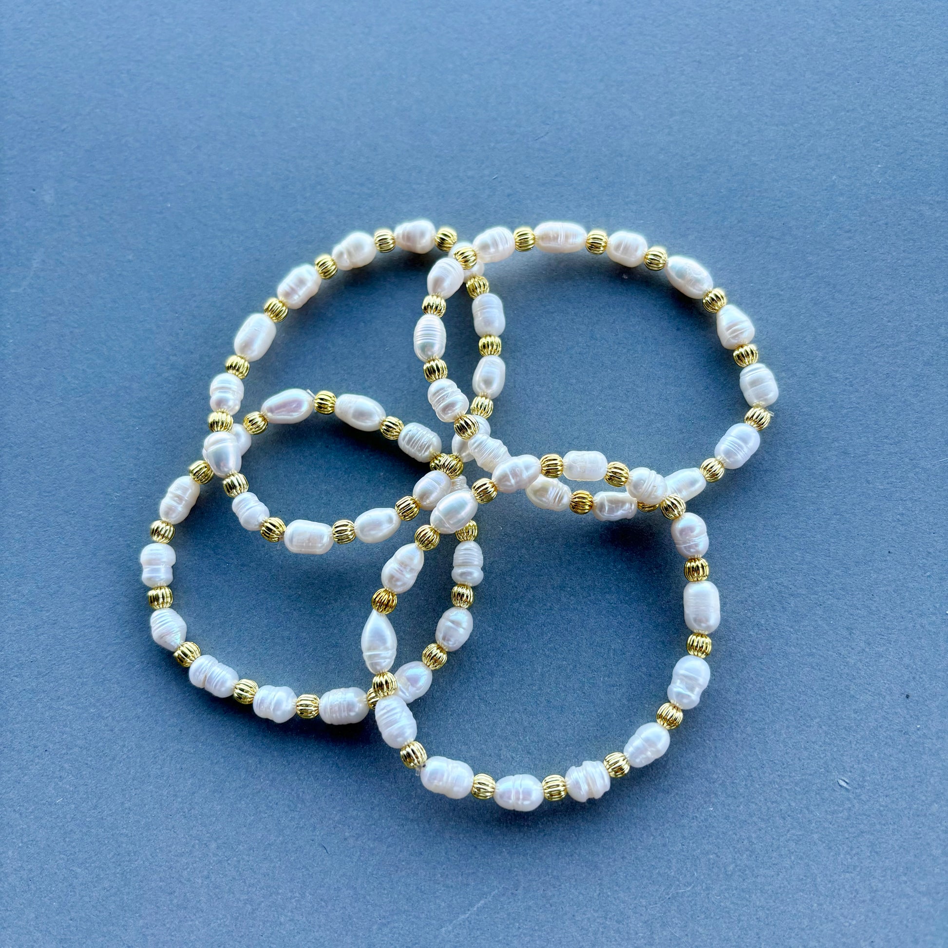 Gold-filled corrugated beads. Real freshwater pearls. Water safe!